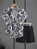 Men's Full Size Contrast Shots Sleeve Shirt and Shorts Set Plus Size